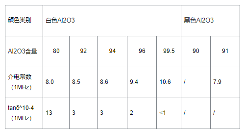 氧化鋁陶瓷通過(guò)氧化鋁純度進(jìn)行分類,氧化鋁純度為>99%被稱為剛玉瓷,氧化鋁純度為99%、95%和90%左右被稱為99瓷、95瓷和90瓷,含量> 85%的氧化鋁陶瓷一般稱為高鋁瓷。黑色氧化鋁陶瓷基板多用于半導(dǎo)體集成電路及電子產(chǎn)品中,這主要是由于大部分電子產(chǎn)品具有高光敏性,需要封裝材料具有較強(qiáng)的遮光性,才能夠保障數(shù)碼顯示的清晰度,因此,多采用黑色氧化鋁陶瓷基板進(jìn)行封裝。氧化鋁相關(guān)性能數(shù)據(jù)如圖: